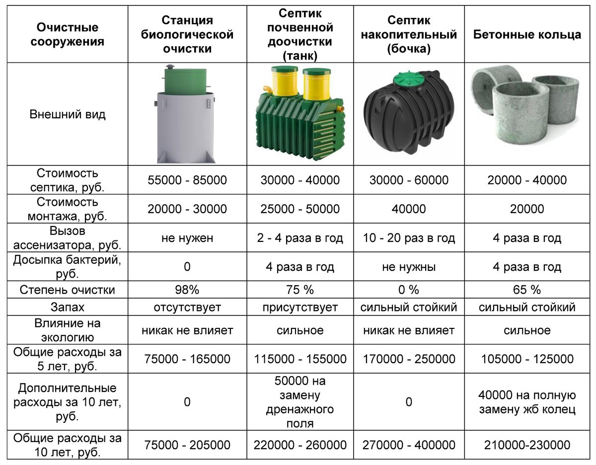 | Септик Тверь | Механический септик | Зависит от модели | Нет | 50–70% | Простота, требует доочистки |
